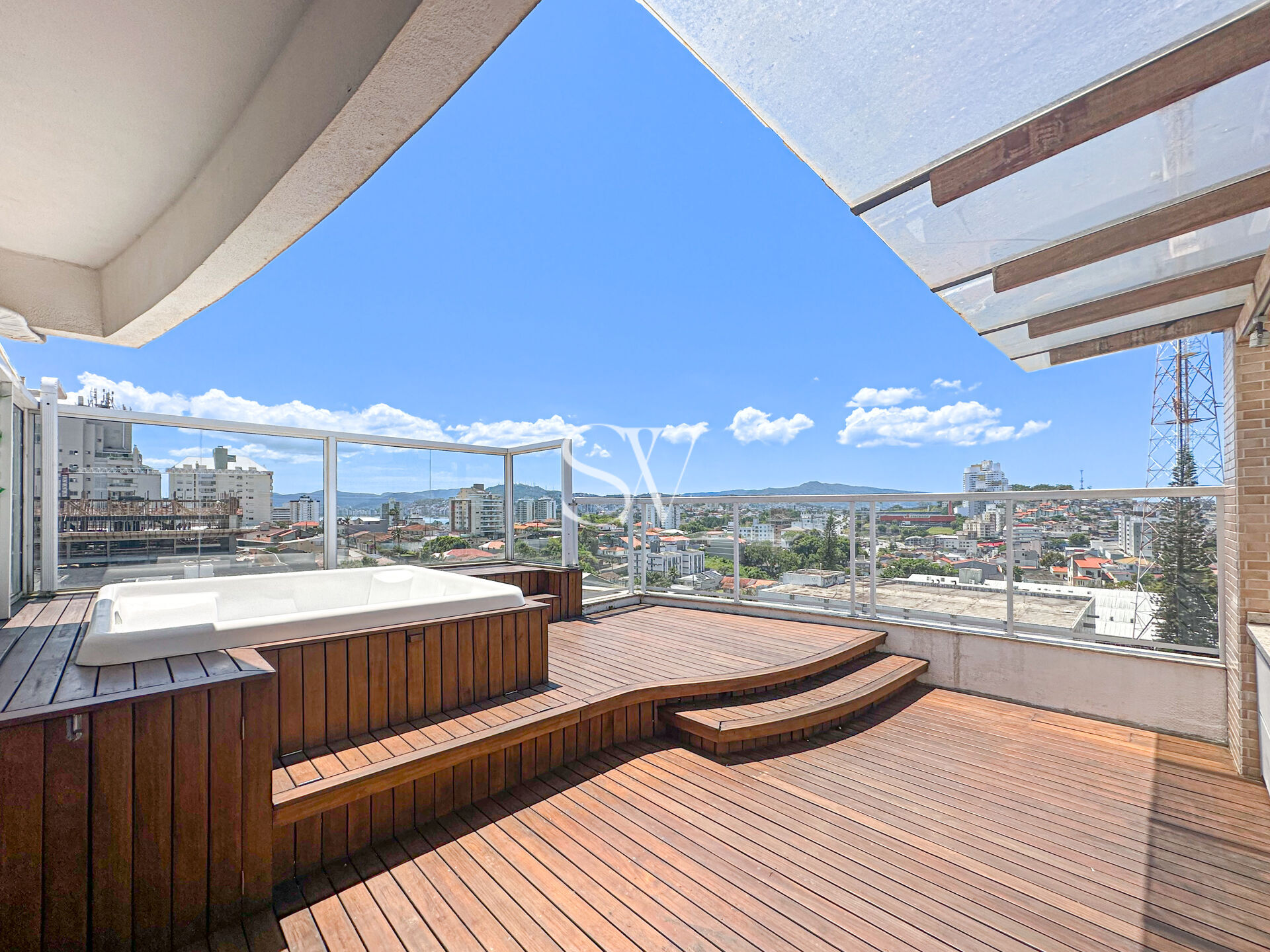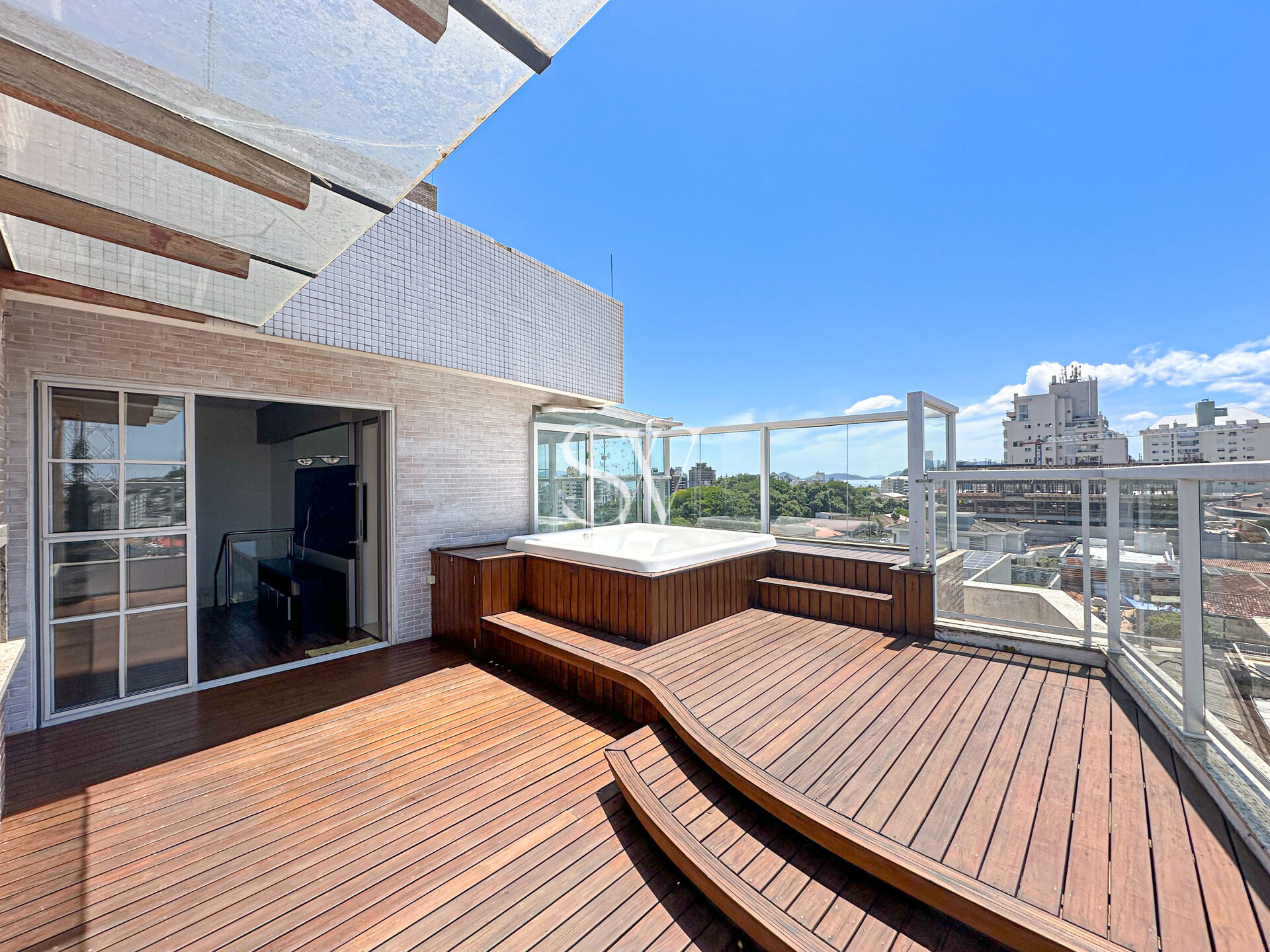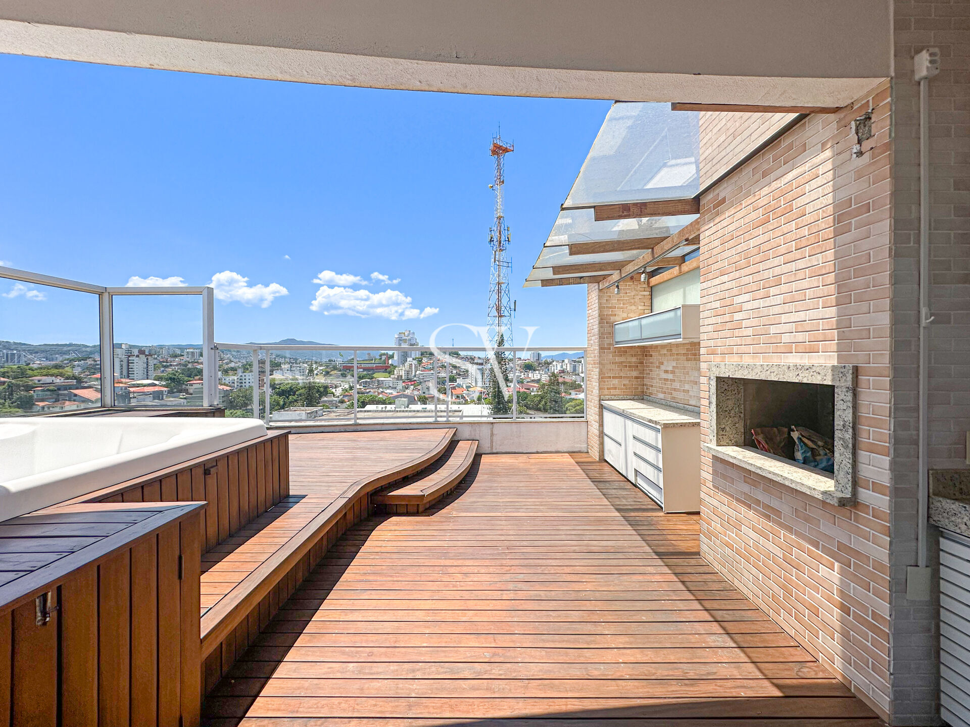 A COBERTURA conta com 3 dormitórios, sendo 1 suíte, com piscina, sala para 2 ambientes, com VISTA PANORÂMICA, sacada ampla, piso porcelanato e vinílico, cobertura totalmente reformado e com um amplo living e dormitórios confortáveis e amplos, hidromassagem e churrasqueira a carvão