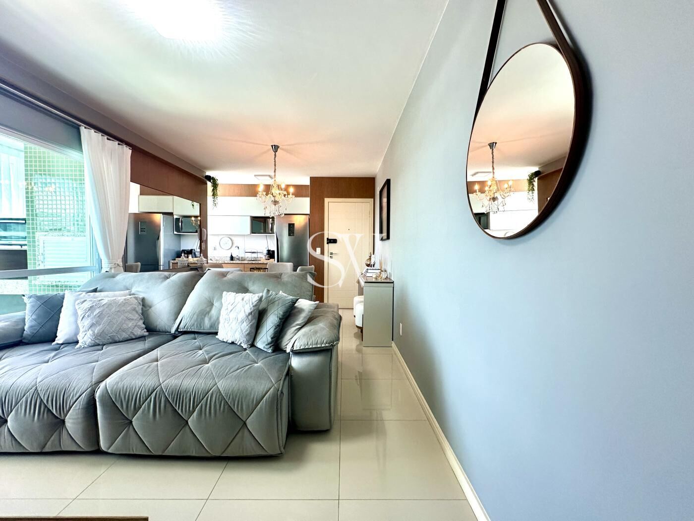 O apartamento vem semi mobiliado, pronto para receber seus toques pessoais. A cozinha é equipada com móveis planejados, garantindo praticidade e elegância em suas refeições diárias. A sala de estar integrada à sala de jantar cria um ambiente perfeito para reunir amigos e familiares. Na sacada, uma churrasqueira espera por momentos descontraídos enquanto você aprecia a vista mar. O aquecimento a gás e as persianas embutidas são detalhes que fazem toda a diferença no dia a dia, proporcionando conforto térmico e privacidade.