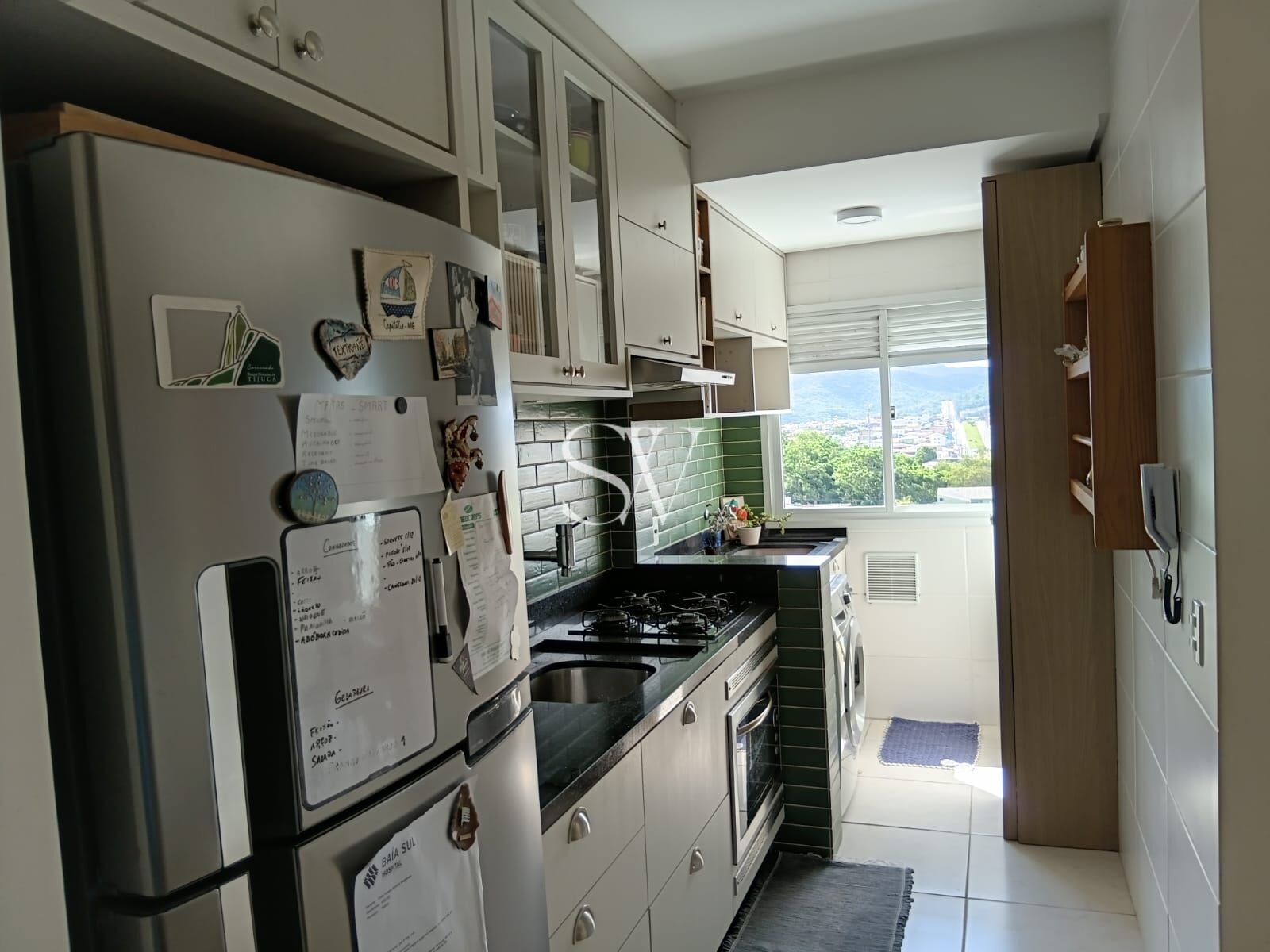 O segundo dormitório também possui móveis planejados, ventilador de teto e isolamento acústico. A cozinha é totalmente planejada e permanece com cooktop e forno. A lavanderia, igualmente planejada, conta com máquina lava e seca inclusa.