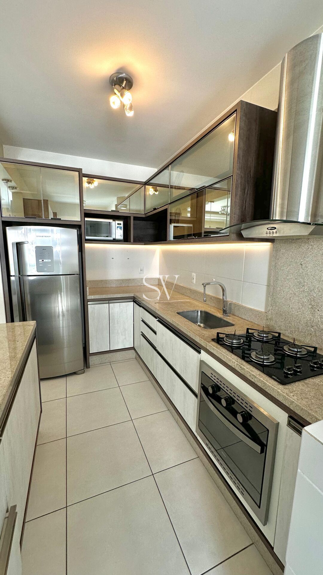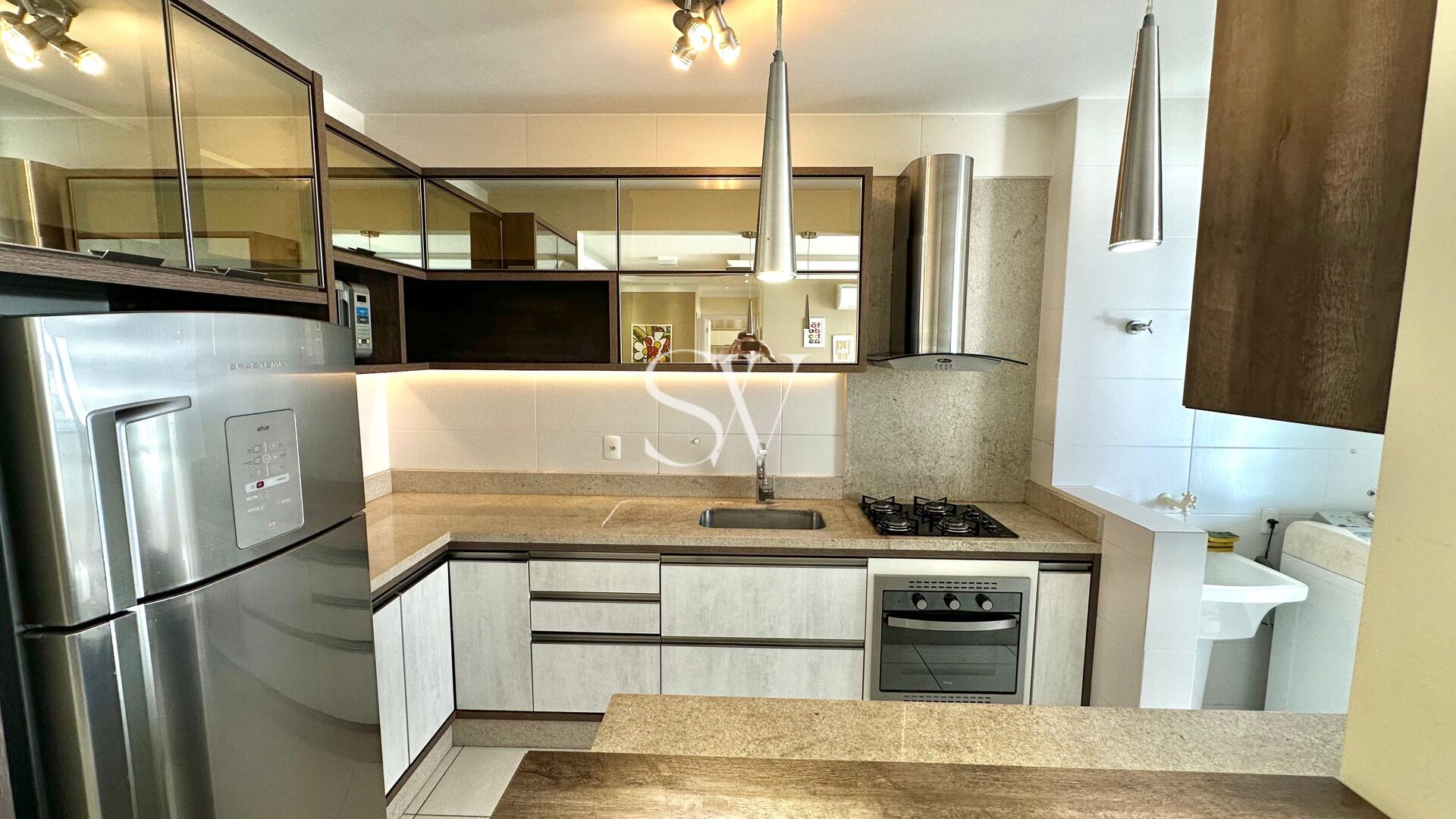 A cozinha, área de serviço, sala, suíte e banheiros possuem mobília planejada, trazendo mais organização, funcionalidade e um acabamento moderno aos ambientes. A suíte dispõe de um closet amplo, ideal para quem valoriza espaço e praticidade. Para maior conforto térmico, o imóvel já conta com ar-condicionado Samsung Inverter instalado na sala e na suíte.