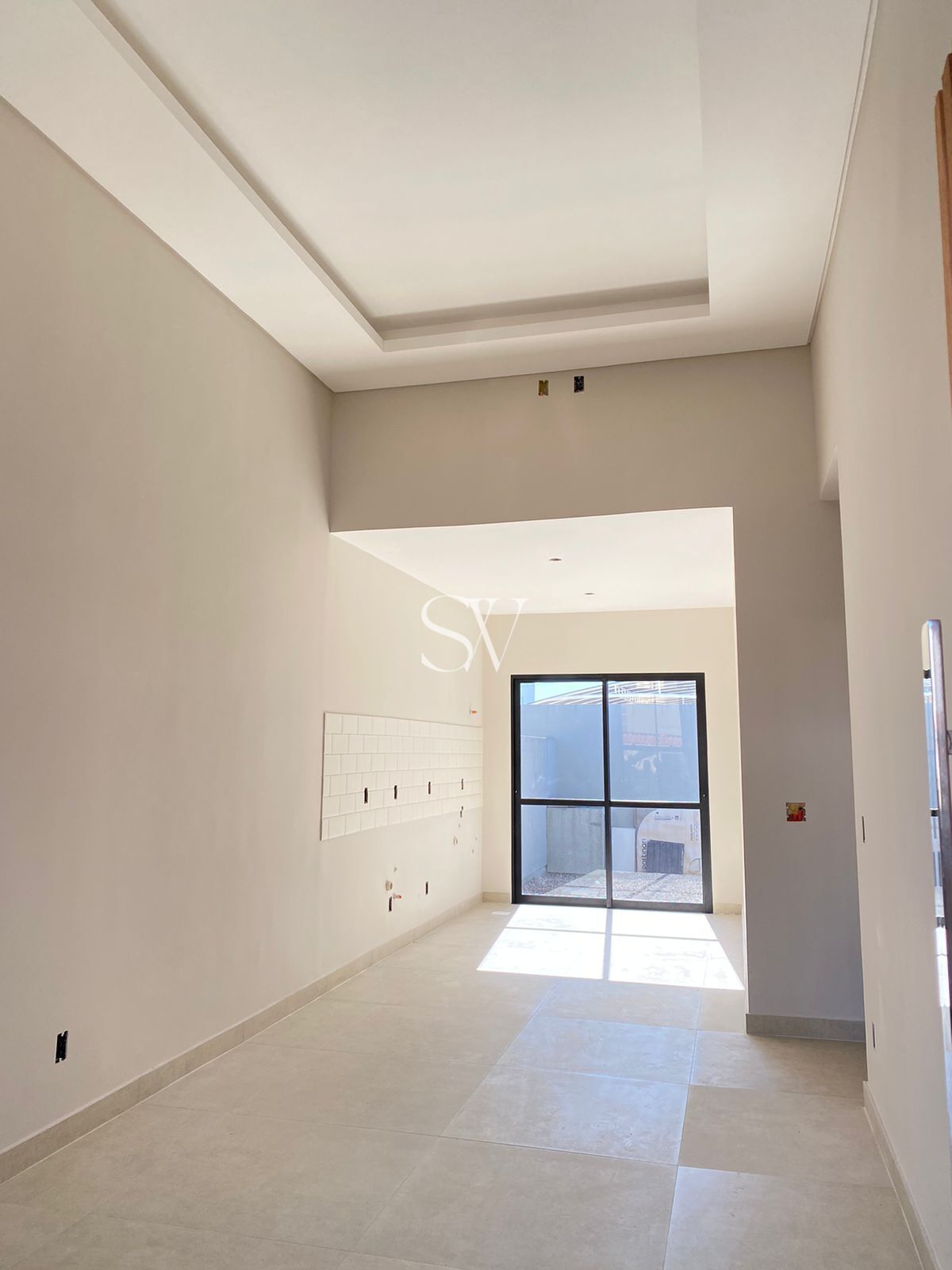 - Sala ampla com sanca de gesso e pé direito de 4 metros